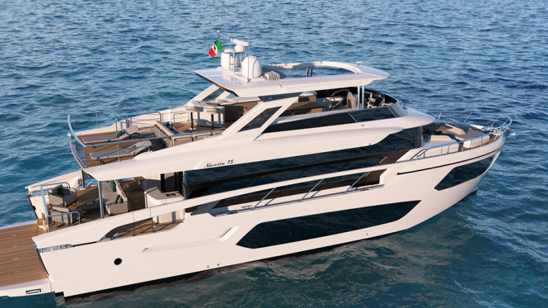 Фактически, Navetta 75 , новый флагман Absolute, обьединяет все отличительные черты дизайна интерьера бренда, сочетание стиля, комфорта и функциональности в интерьерах, которые можно модулировать в зависимости от ситуации. Например, камбуз может быть соединён с салоном или отделен от него вертикально сдвигающейся зеркальной панелью. Еще одной отличительной особенностью конструкции является система лестниц и проходов, которая позволяет экипажу действовать по своему усмотрению, не заходя в гостевые помещения.