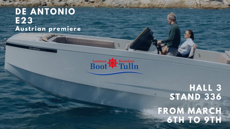Dieses Jahr wird das Modell DE ANTONIO YACHTS – E 23 exklusiv an unserem Stand HALLE 3 / STAND 336 als Österreich-Premiere präsentiert.