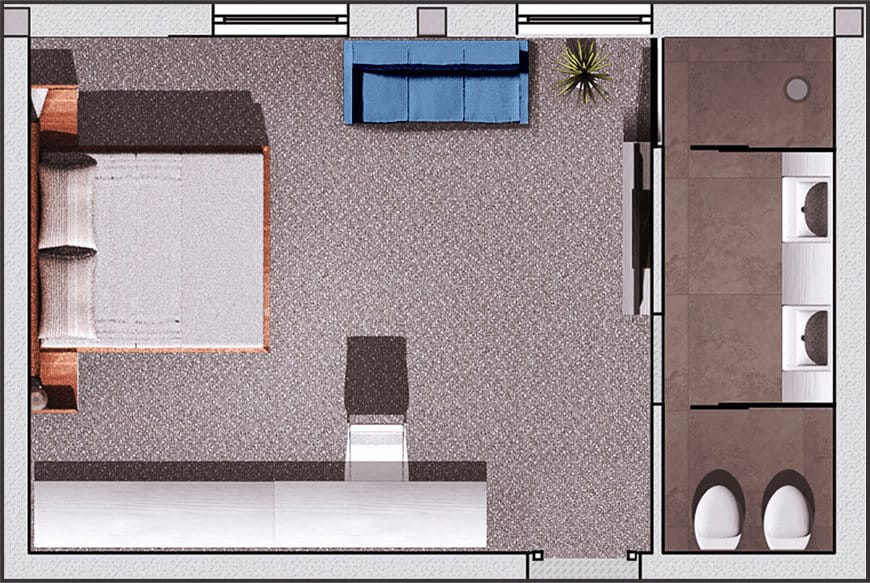 1 bedroom with King Size bed. 1 bathroom with toilet and shower. Extenable couch. Air condition.