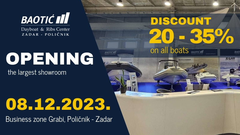 Wir öffnen die Türen zu unserem ersten Boots-Showroom in Poličnik und bieten Ihnen eine einzigartige Gelegenheit, die neuesten Modelle unserer exklusiven Marken zu entdecken. Unser Showroom befindet sich in der Geschäftszone von Grabi, Poličnik in der Nähe von Zadar, und zeigt Boote mit einer Länge von bis zu 10 Metern, also 27 Fuß.
