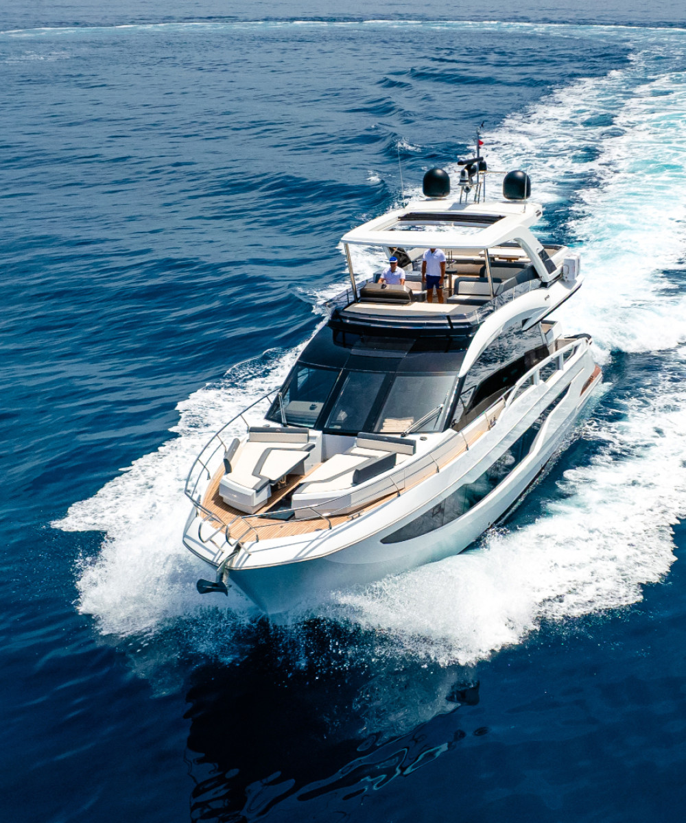 - beeindruckende Flybridge mit großer Sitz- und Sonnenliege sowie Tisch
