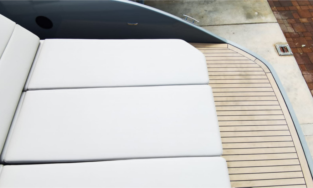 - Synthetisches Teak auf Achterdeck, Badeplattform, Seitendecks und Vordeck